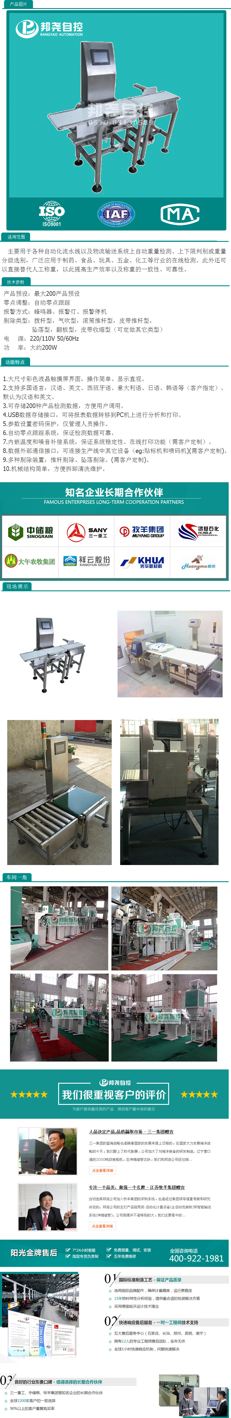 重量選別機(jī)又叫重量分選機(jī),在線檢重秤,是一種應(yīng)用于各種自動(dòng)化流水線以及物流輸送系統(tǒng)上的自動(dòng)重量檢測(cè)、上下限判別或根據(jù)重量檢測(cè)產(chǎn)品是否合格的高科技自動(dòng)化分選設(shè)備。廣泛應(yīng)用于制藥、食品、玩具、五金、化工、汽車(chē)配件等行業(yè)的在線檢測(cè)。此外,還可直接替代人工稱(chēng)重,以達(dá)到提高生產(chǎn)效率,提高準(zhǔn)確度和山少人工,降低成本的目的。